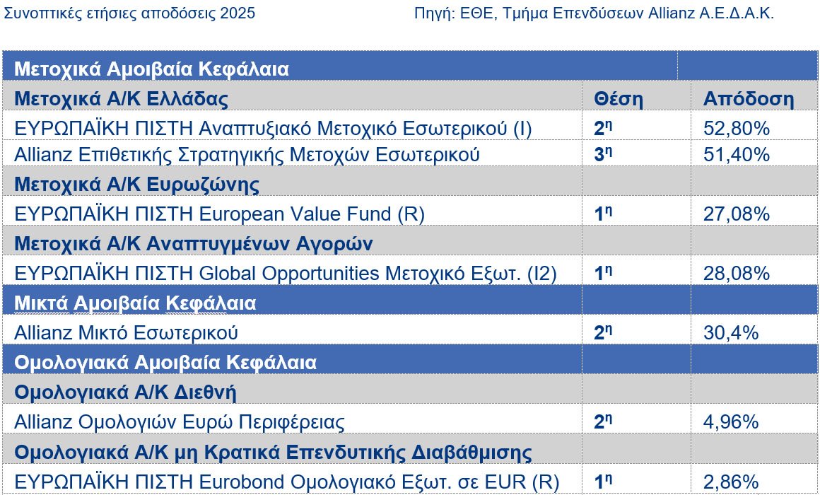 Το 2025 αποτέλεσε μία χρονιά ορόσημο για την Allianz Α.Ε.Δ.Α.Κ., την εταιρεία διαχείρισης κεφαλαίων με μακρόχρονη και ισχυρή παρουσία στην ελληνική αγορά, καθώς κατέγραψε εξαιρετικές επιδόσεις και απέσπασε σημαντικές...